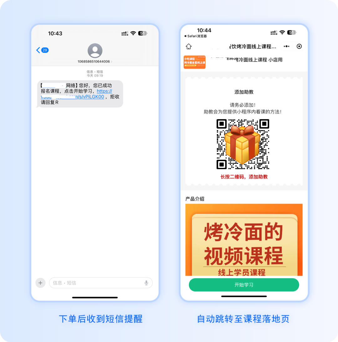 微信视频号卖课全流程!雁小知变现神器让学员下单自动接收上课短信链接