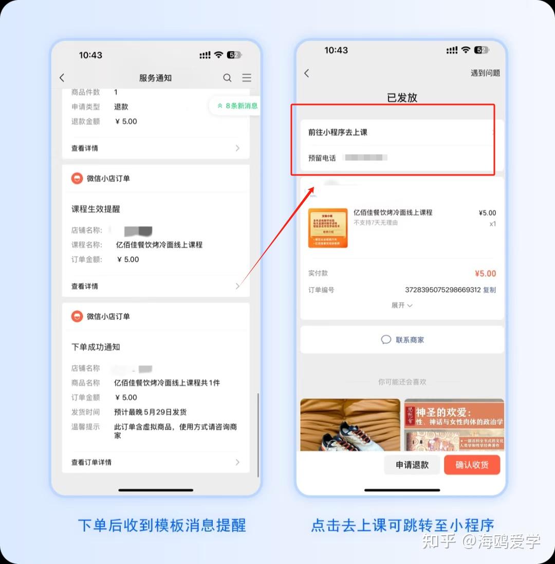 微信小店卖课全流程!雁小知变现神器让学员下单自动接收上课短信链接